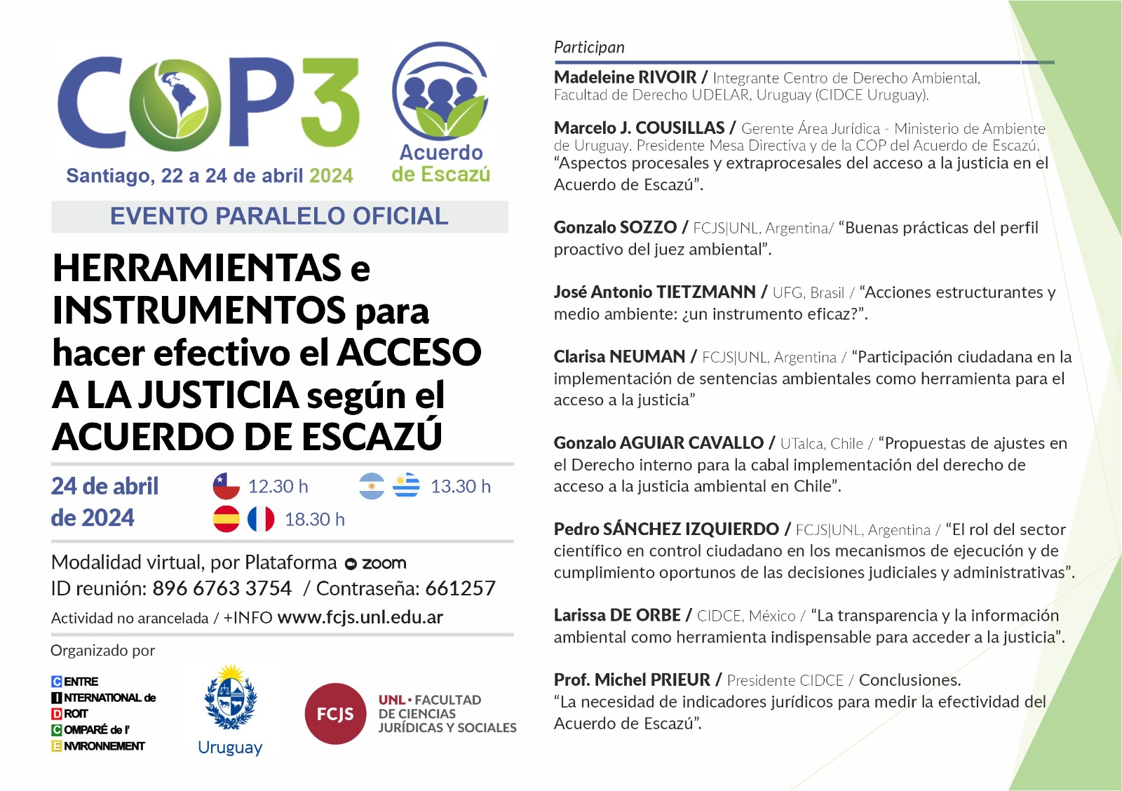 Le CIDCE organise un side event à Santiago pour la COP3 de l'Accord de Escazu le 24 avril à 18h30 France (en espagnol).